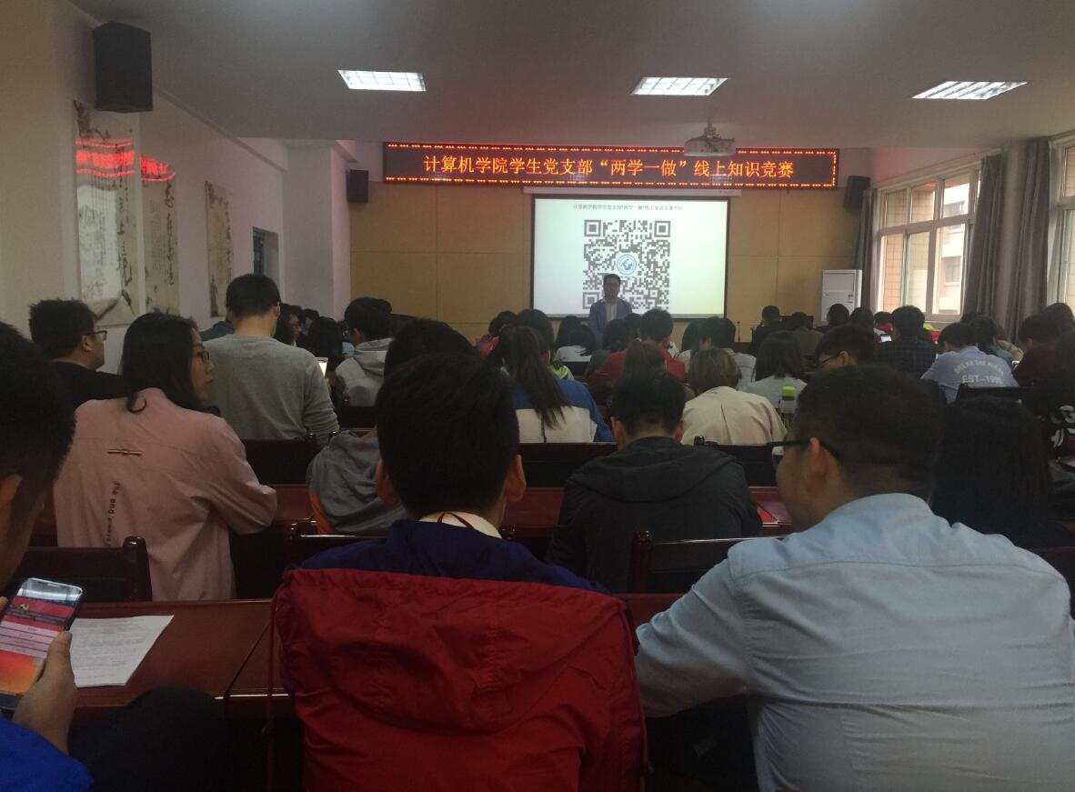 为贯彻落实《关于推进“两学一做”学习教育常态化制度化的意见》,深入学习习近平总书记系列重要讲话精神,满怀信心的迎接党的十九大胜利召开,9月4日下午,计算机公司员工党支部在临潼校区16教323会议室举办“两学一做”学习教育线上知识竞赛活动,计算机公司员工第三党支部书记胡军卫、员工第三党支部、第一党支部全体党员及部分入党积极分子100余人参加了此次活动。各位参赛选手通过赛前学习,现场线上答题的形式,经过激烈角逐,最终软工1401班张心应等8人获得一等奖,计科1401班王特等10人获得二等奖,软工1501班杨柳等17人获得三等奖。