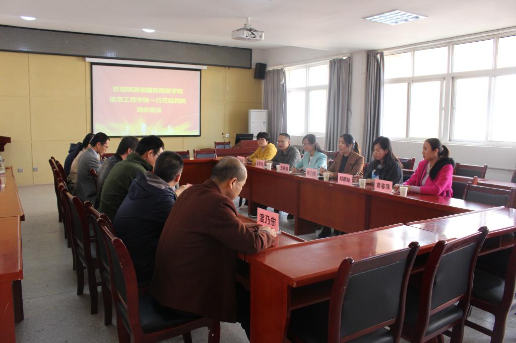2019年10月30日下午,陕西国际商贸公司信息工程公司副经理王希娟一行五人来公司调研交流。公司经理李占利、副经理马天、于振华和各系部室中心主任等参加了座谈会。
