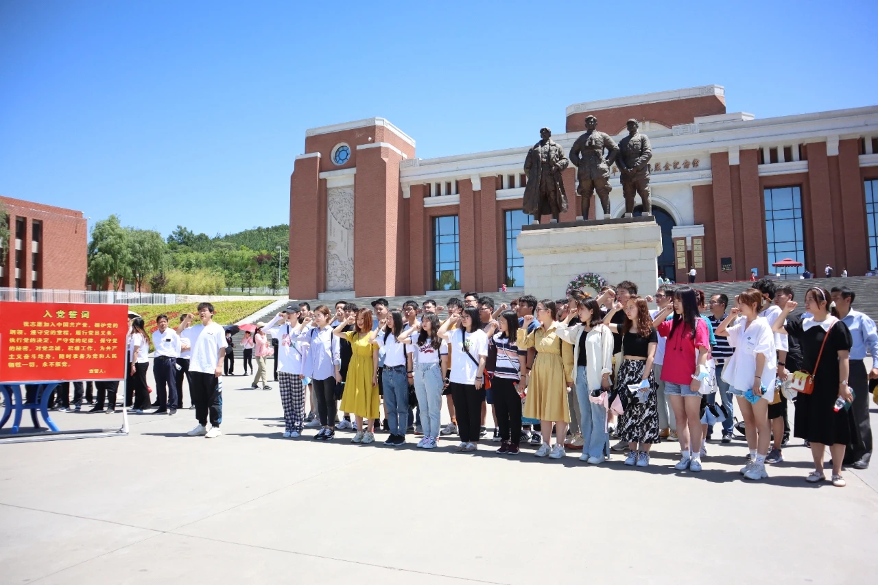 现场教学第一站照金: 全体党员在陕甘边革命根据地照金纪念馆前,面向党旗,高举右手,重温入党誓词。随后,全体党员进入陕甘边革命根据地照金纪念馆。在讲解员的生动讲解中,通过一张张照片、一件件文物、一幕幕情景,大家深入了解了陕甘边革命斗争史以及刘志丹、谢子长、习仲勋老一辈无产阶级革命家创建照金苏区的艰辛探索历程,深刻领会了照金精神的丰富内涵。