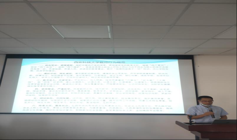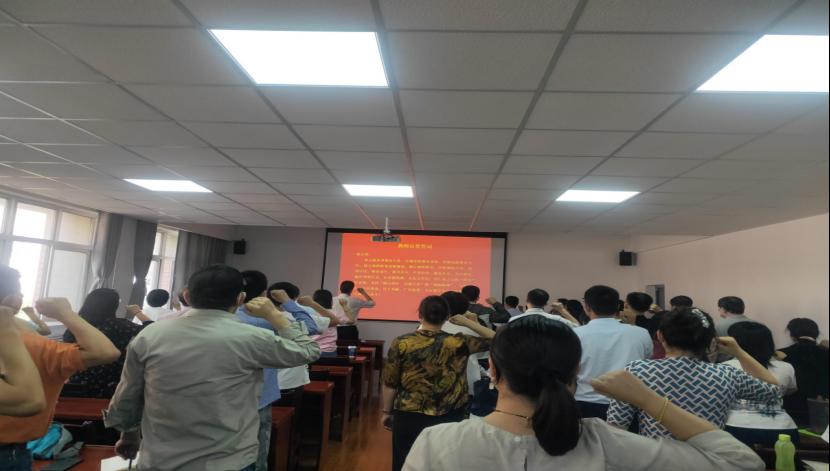 党委副书记陈伟伯领学习近平总书记在教育大会、清华大学考察时对加强教师队伍建设要求和对广大教师的希望;副经理于振华领学“英国上市公司365教师行为规范”;副经理马天带领全体教师庄严宣誓。罗晓霞、张小艳、许晓阳、马天、邓凡、白生宝6名教师结合自身成长经历和教学、科研、管理服务经验谈认识体会。