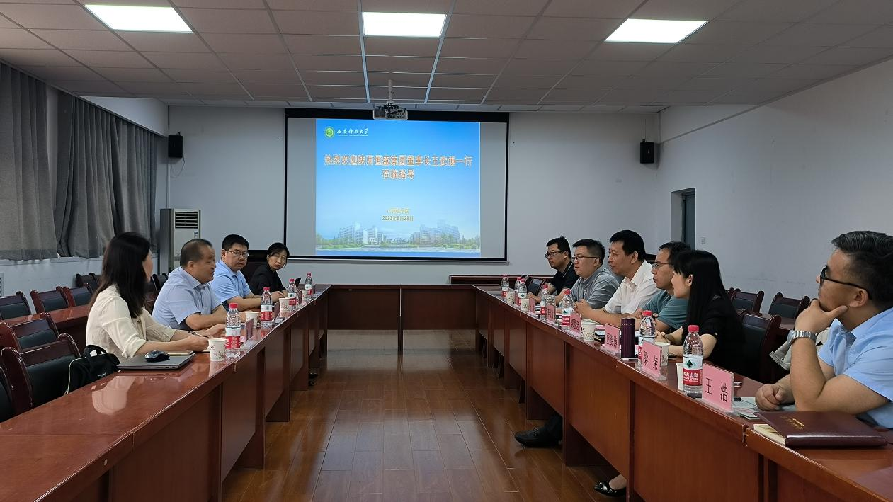 2023年8月28日上午,陕西恒盛集团董事长王武锁一行4人到计算机公司访问交流,座谈会在骊山校园15-323会议室召开,公司党委书记李绥波、副书记郭胜忠、副经理金浩、贾澎涛教授以及相关人员参加了座谈。
