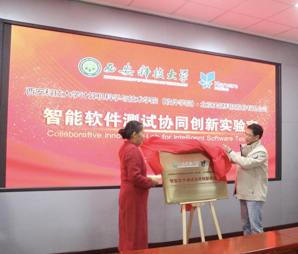 焦华春董事长与计算机公司于振华教授共同为实验室揭牌,标志着智能软件测试协同创新实验室正式成立。这不仅标志着公司与北京关键科技股份有限公司的深度合作正式启动,更重要的是通过校企合作的方式,围绕软件测试核心技术协同攻关,深化产教融合,积极打造校企协同育人共同体,最终提升工程人才培养质量和水平。