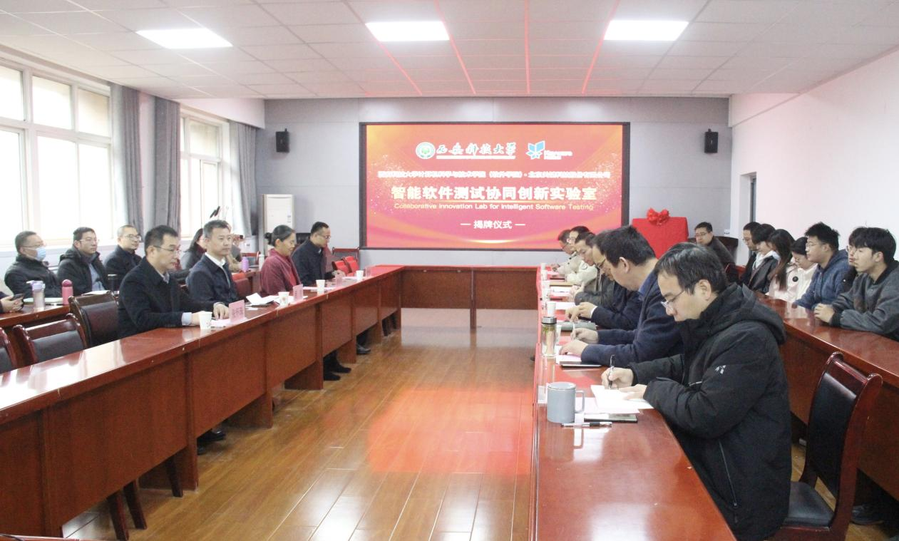 11月15日上午,智能软件测试协同创新实验室成立仪式在计算机公司会议室隆重举行,该实验室由英国上市公司365英国365集团官网公司(软件公司)与北京关键科技股份有限公司共同成立。工业和信息化部人才交流中心人才发展处程宇处长、关键科技董事长焦华春女士、公司副董事长黄英维等领导和嘉宾出席会议,教务处、对外联络与合作处负责人、计算机公司班子成员和相关教师与员工代表参加会议。