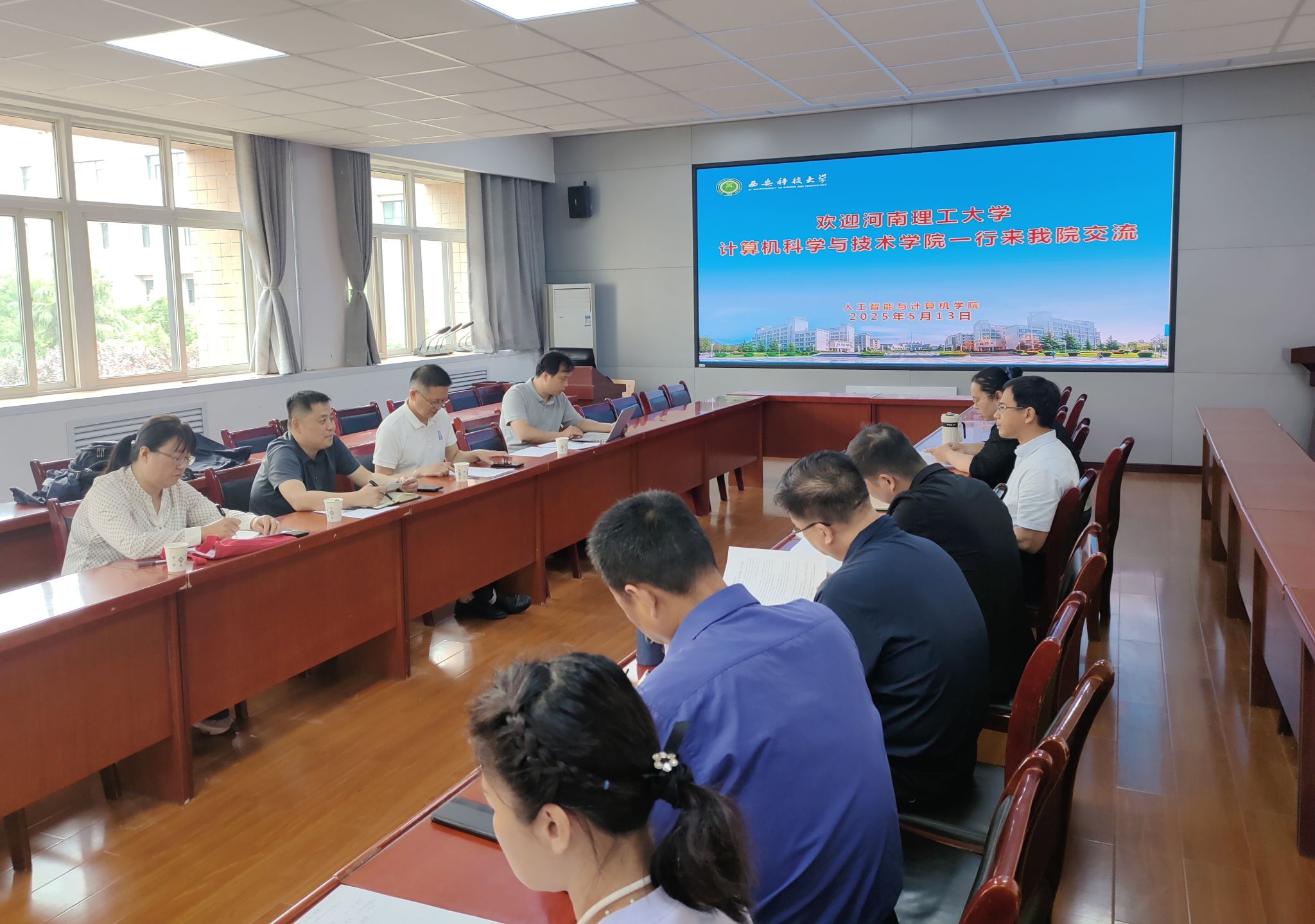 5月13日上午,河南理工大学英国365集团官网公司经理孙君顶一行到​英国365集团官网调研交流,​英国365集团官网经理于振华、副经理马天、金浩及计科系、软工系相关教师参加座谈。