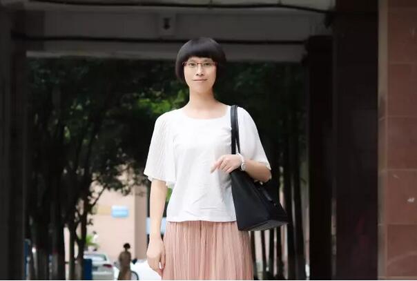 齐耳短发显得乖巧可爱又清爽,纯白的上衣与淡粉色的裙子搭配在一起,给人一种清风拂面的感觉,体现出了青年教师的活力与朝气。而深色的包包又使整体的搭配多了一份大气与稳重,非常符合教师的身份。