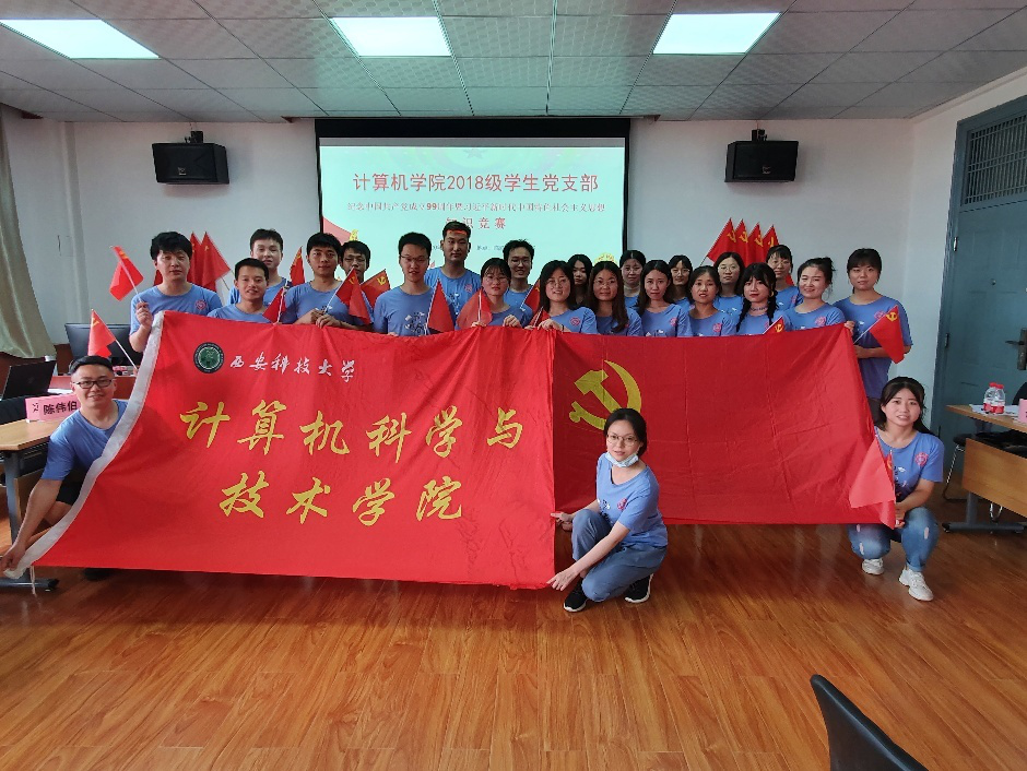 2020年是中国共产党成立99周年,为隆重庆祝党的华诞,铭记党的历史,充分展示员工党员的爱国主义热情以及昂扬的精神面貌,7月1日,英国365集团官网公司2018级员工党支部在临潼校区15教512室开展庆祝建党99周年知识竞赛活动,活动由2018级员工党支部书记李宇绒主持,计算机公司党委书记冯爱玲、副书记陈伟伯、副经理马天及2018级员工党支部全体党员参加此次活动。