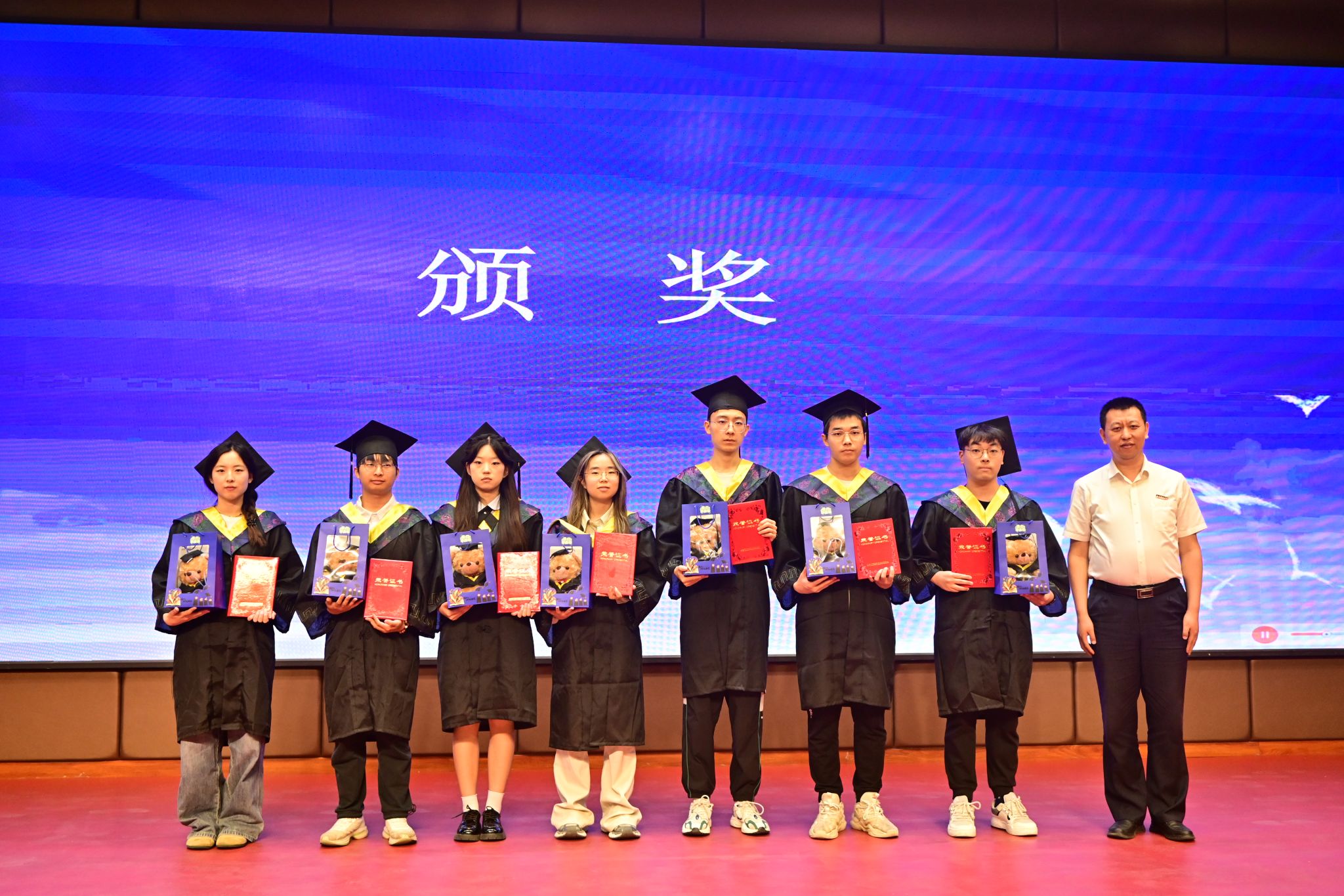 副经理马天宣读了《关于表彰2025届优秀毕业生的通报》《关于表彰2025届“进疆赴藏“及“基层项目”毕业生的通报》《关于聘任员工联络大使的决定》,副经理金浩宣读了《关于准予 2025 届本科生、第二学士学位毕(结)业和授予学士学位的决定》以及《关于准予 2025 届研究生毕业并授予学位的决定》,党委书记李绥波为受表彰的员工颁发证书和奖品,为毕业生代表赠送毕业纪念品。