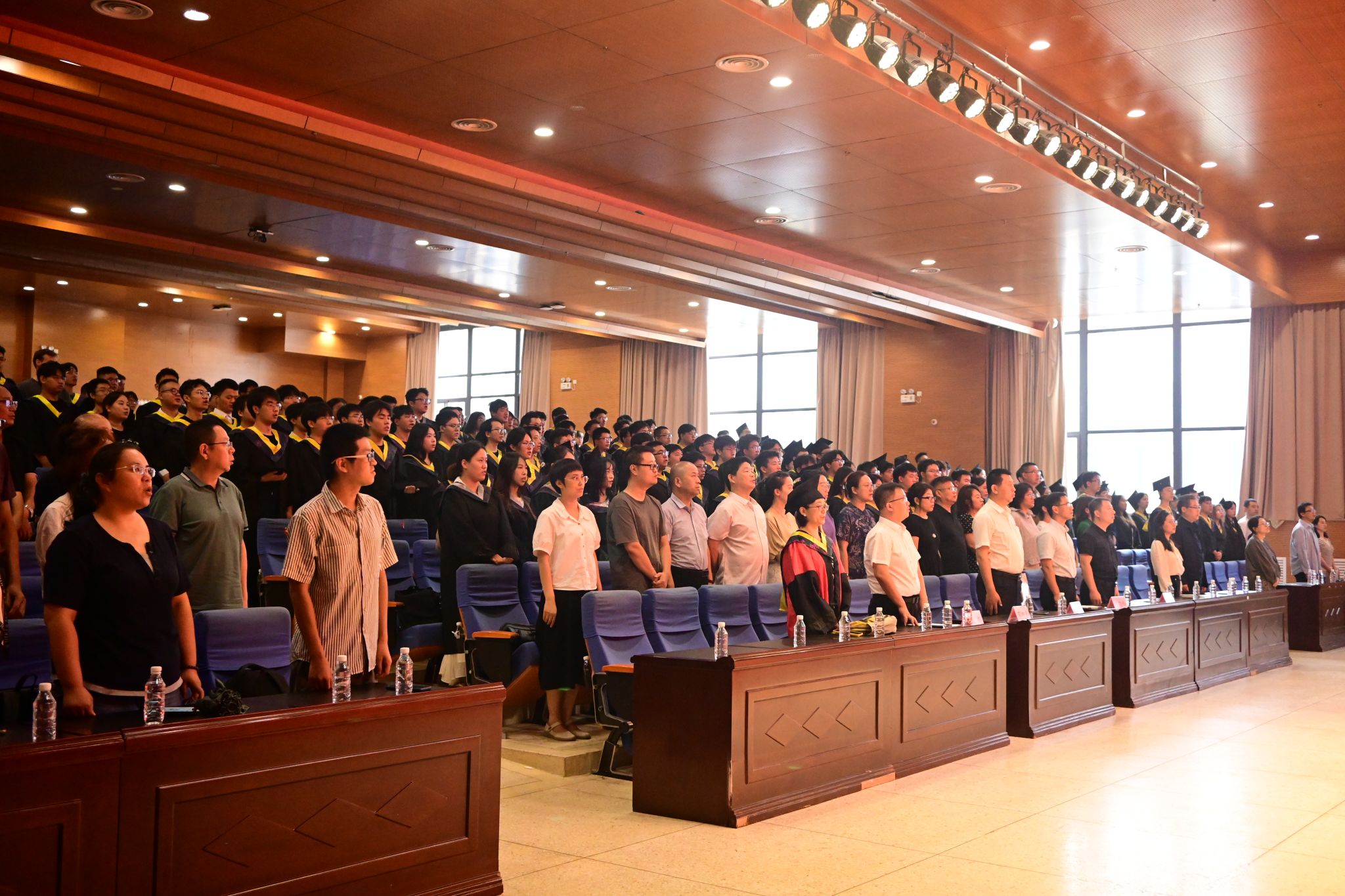 毕业典礼在庄严的国歌声中拉开序幕,2025届本科生代表赵福鑫和研究生代表翟洁晨回望在校时光,字里行间满是对母校的深切眷恋与对未来的灼灼期待。他们的言语间既流淌着对知识的热忱、对同窗情谊的珍视,更跃动着奔赴新程的坚定底气,情动之处热泪盈眶。教师代表王丹向即将踏上新征程的毕业生们送上了“三个锦囊”。将对毕业生们的牵挂与祝福凝入话语之中,祝愿毕业生们“一鸣从此始,相望青云端”,带着学习的收获,带着深厚的友谊,带着对真理的渴望,踏上新的征程。