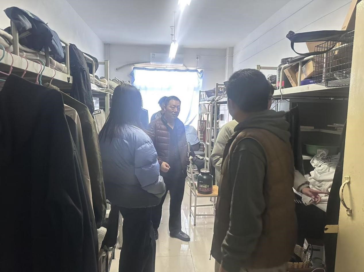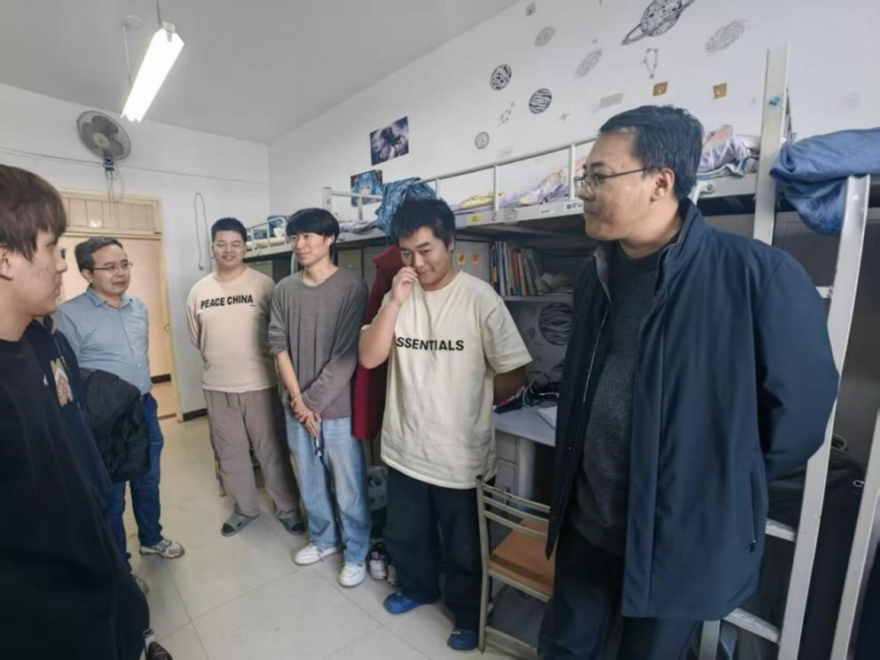 走访过程中,王建强、郭胜忠带领本科生辅导员深入各年级宿舍与同学们亲切交谈,详细询问大家的学习进度、生活适应情况以及遇到的困难,针对同学们提出的课程学习、就业规划等问题进行耐心解答,鼓励大家珍惜学习时光,主动提升专业能力,积极参与学科竞赛和科研活动;对内务整洁的宿舍给予充分肯定,对内务较差的宿舍要求立即整改,叮嘱同学要保持良好的生活习惯,合理安排作息时间。