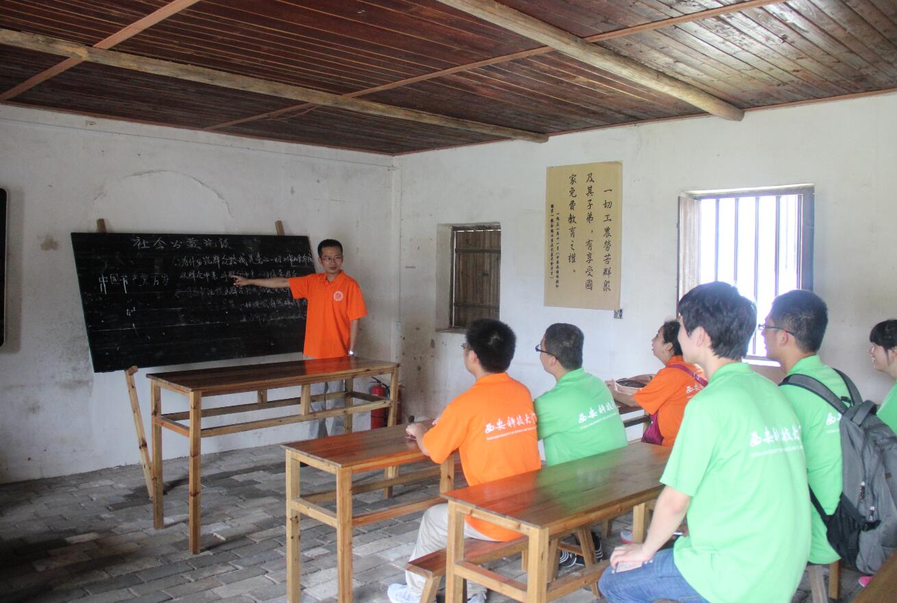 实践队到达瑞金后在瑞金市团委的大力帮助与支持下,邀请到了井冈山干部公司、瑞金市委原党史办副主任刘良教授给实践队全体成员授课,刘教授从瑞金的开创、建立、发展、转移四个阶段为队员们讲述了中华苏维埃共和国的光辉历史,使得队员们感受到了老一辈无产阶级革命家坚韧求索的精神,使得我们从中摄取激昂向上、催人奋进的感召力量。