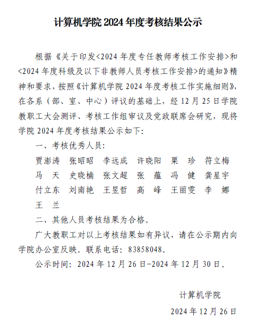 上一篇:计算机公司2024年度师德师风考核结果公示