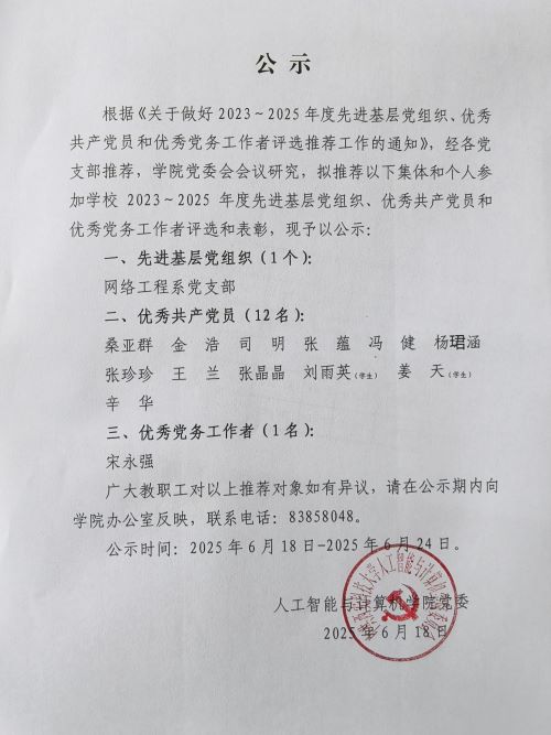 2025年公司“七一”表彰推荐公示