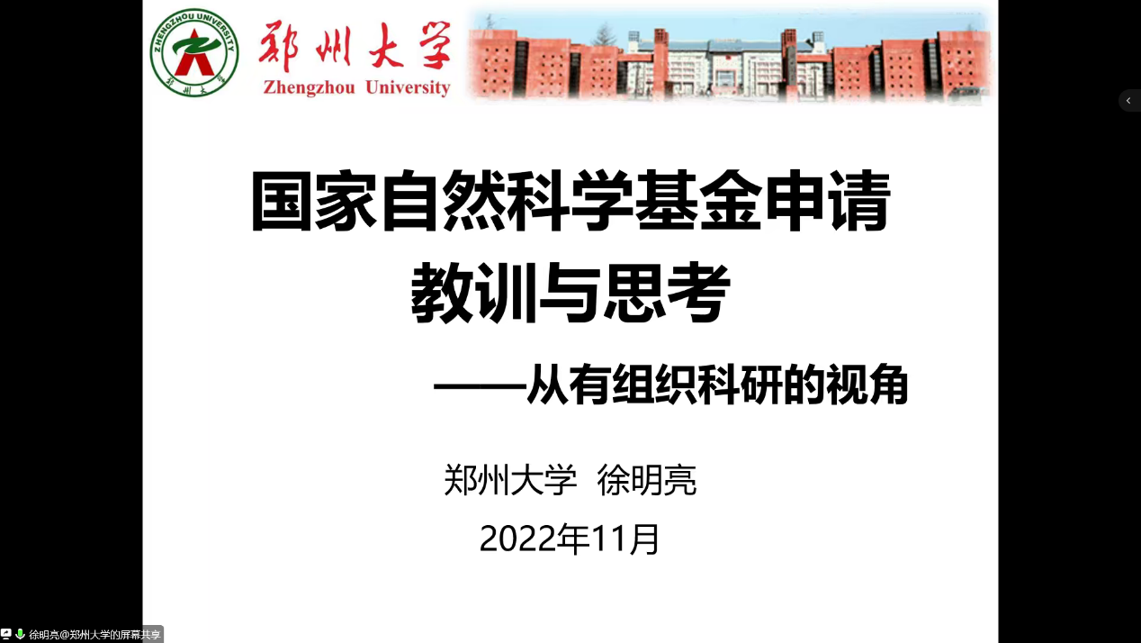 11月9日,计算机公司在线召开2023年国家自然科学基金申报启动会,并邀请计算机与英国365集团官网、软件公司经理徐明亮教授进行基金申报的辅导报告。