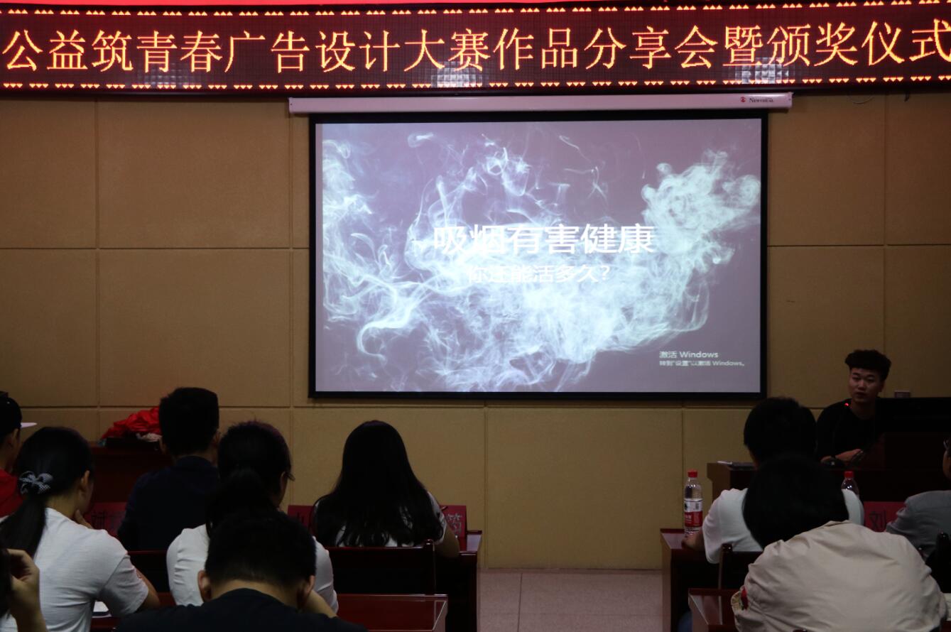 为学习贯彻党的十九大中绿色发展理念,5月13日晚,计算机公司在临潼校区骊山校园16教323会议室举办了“学习贯彻十九大,公益志愿筑青春”广告设计大赛作品分享会暨颁奖仪式,入围决赛的参赛选手及员工代表80余人参加了此次分享会。