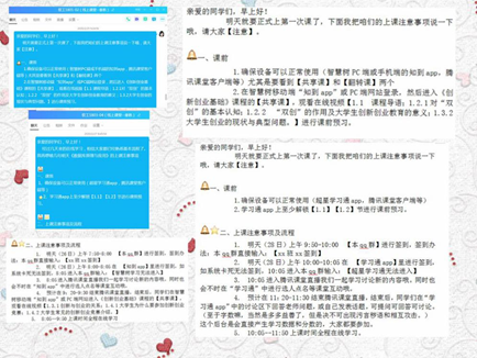 建课说起来容易做起来难,在线教学与线下面授不同,所有的课程资源都必须根据在线课堂的特点,重新拆分,重新设计。她放弃了假期,加班加点开始积极准备课程资源。2月14日午夜时分终于完成了两门课程的一期资源建课。